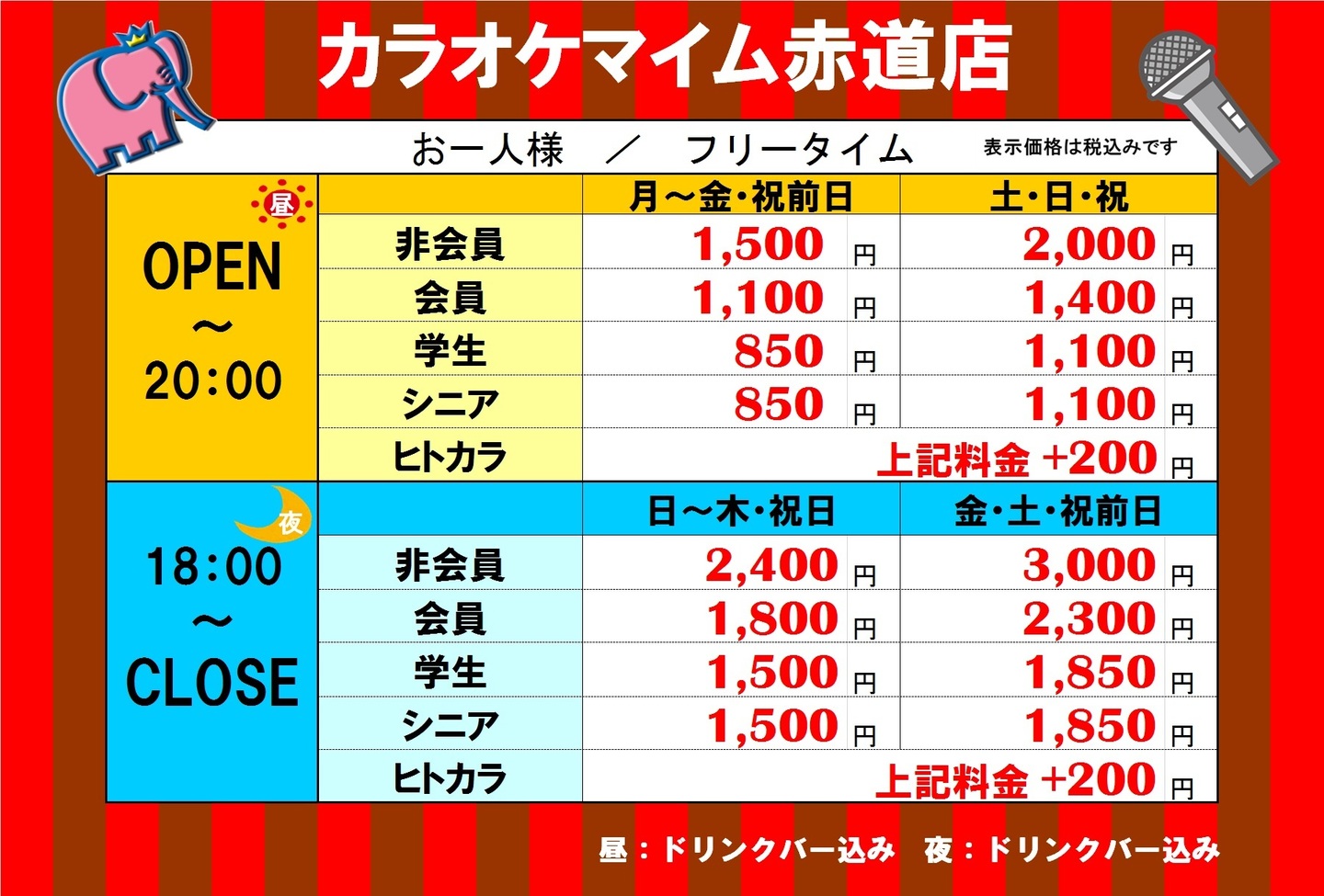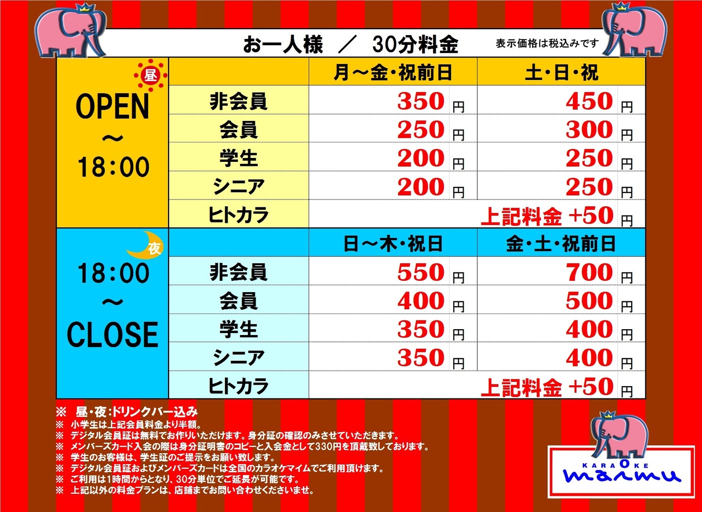 カラオケ料金表
