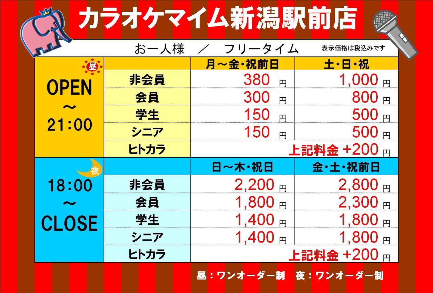 カラオケ料金表