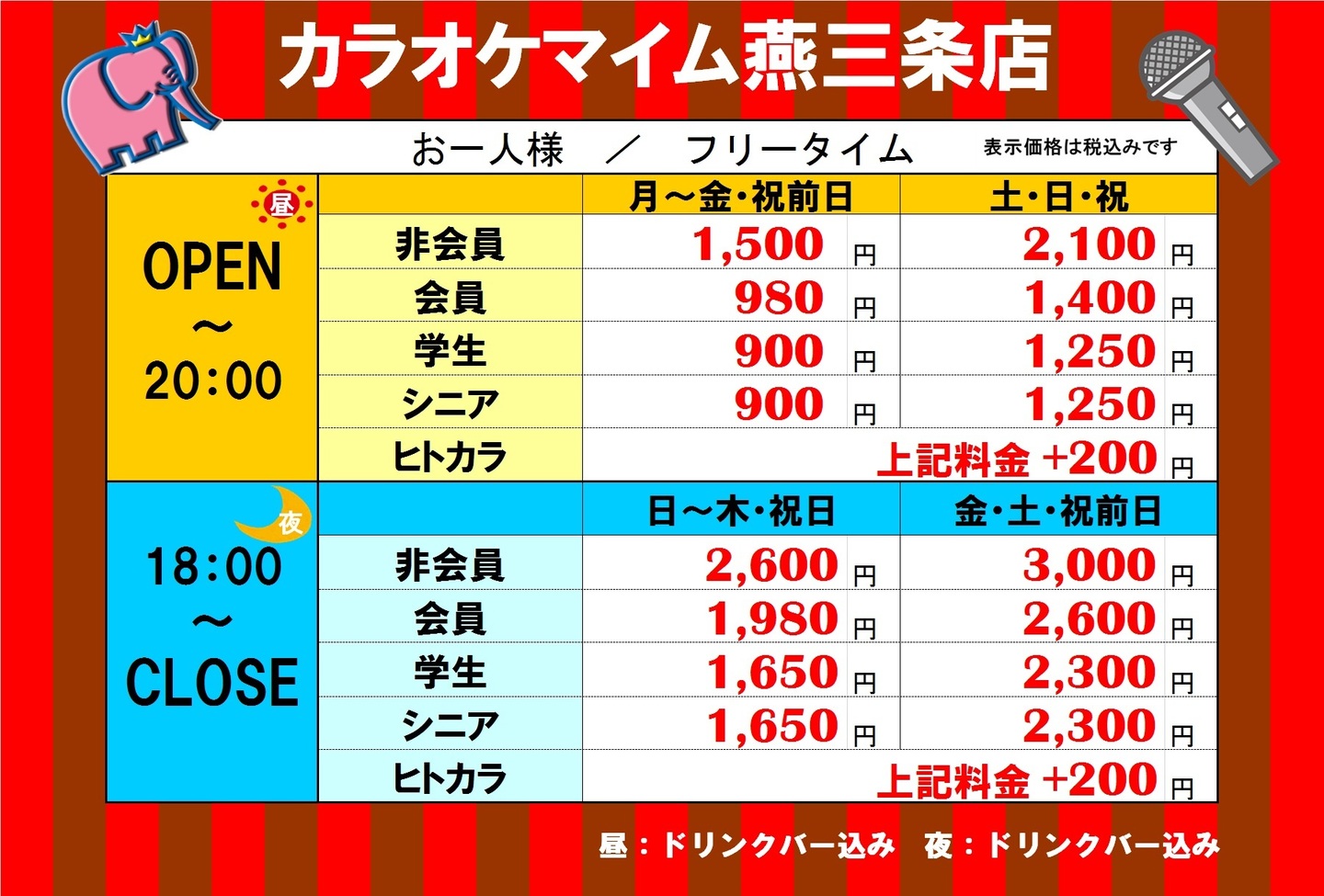 カラオケ料金表