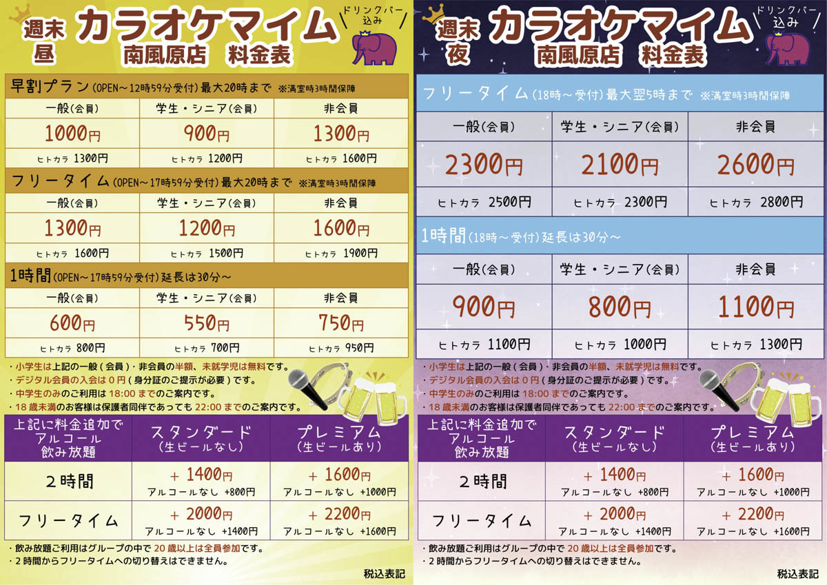 カラオケ料金表