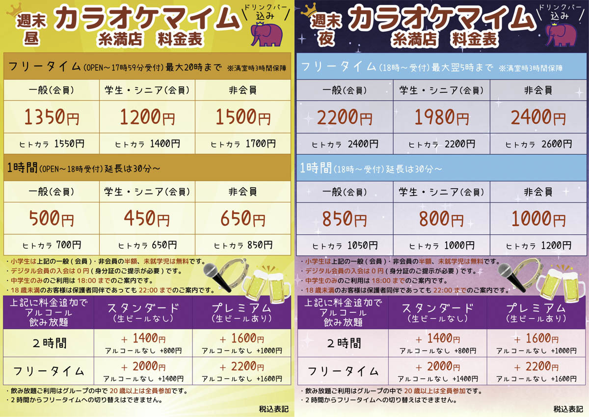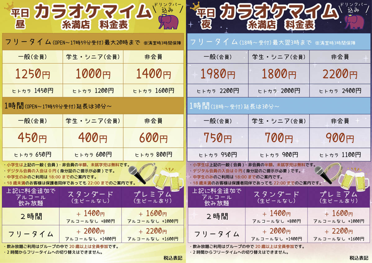 カラオケ料金表