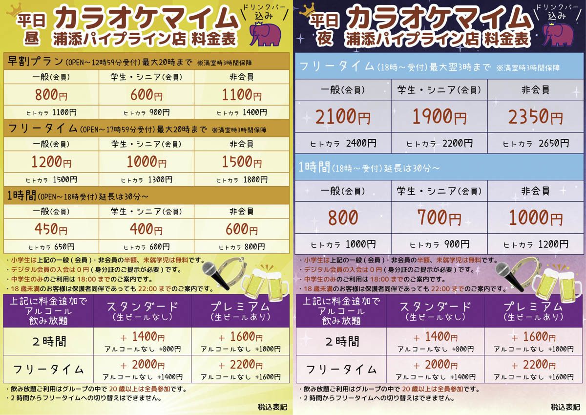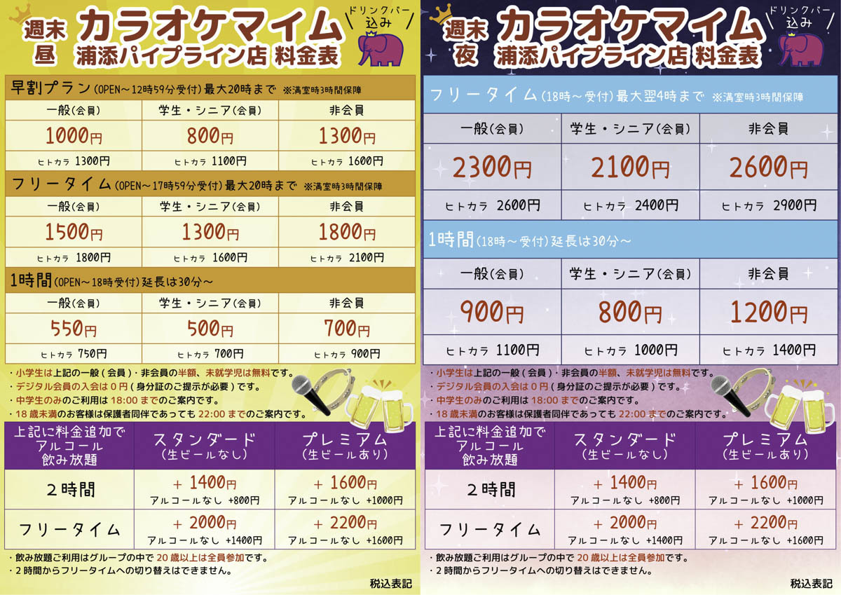 カラオケ料金表