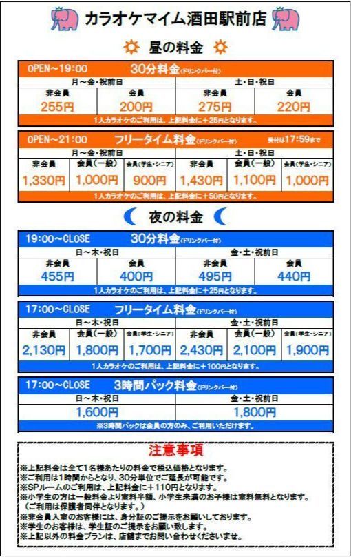 カラオケ料金表